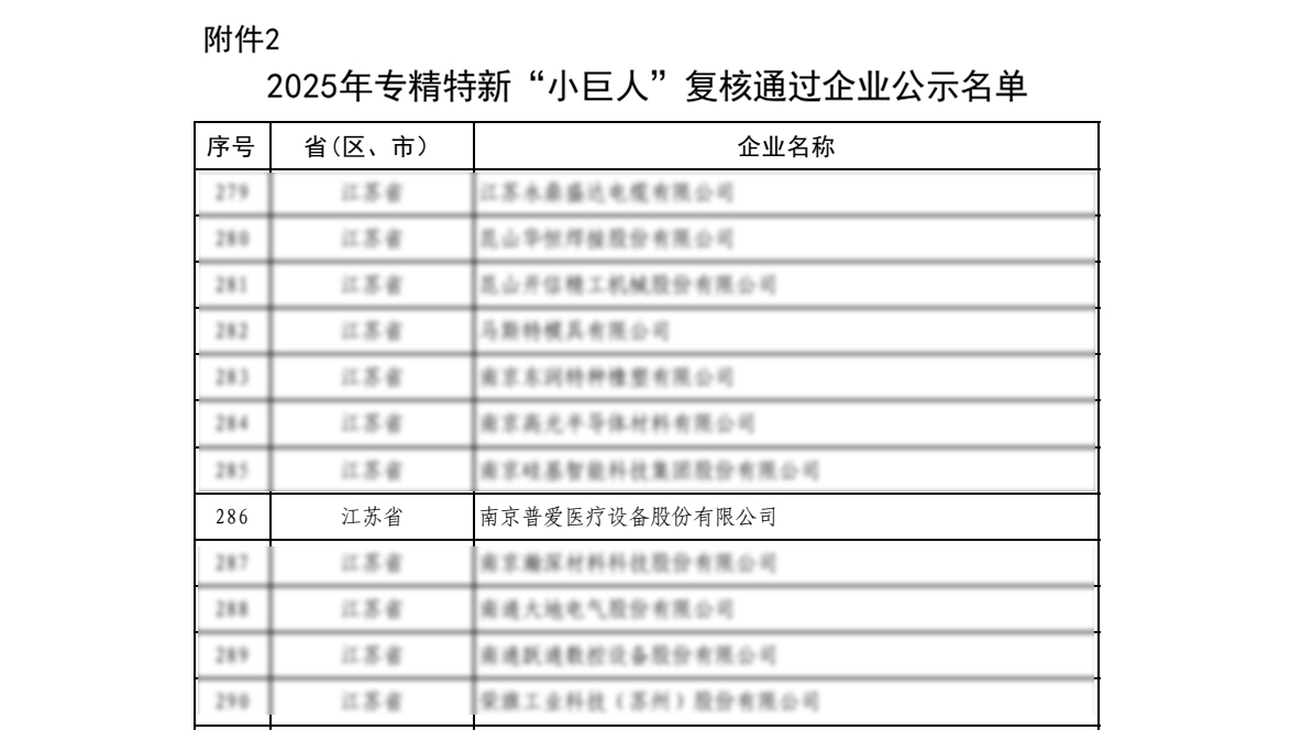 近日,工業(yè)和信息化部2025年專精特新“小巨人”企業(yè)復(fù)核結(jié)果公布,南京普愛醫(yī)療設(shè)備股份有限公司憑借22年深耕醫(yī)學(xué)影像與手術(shù)機器人設(shè)備領(lǐng)域的技術(shù)積淀和豐碩的自主創(chuàng)新成果,順利通過復(fù)審,持續(xù)保有國家專精特新“小巨人”企業(yè)榮譽稱號。
